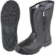 Регулируемое голенище для надежной фиксации и комфортного максимально плотного прилегания обуви к голени с помощью ремня и пряжки. Голенище изготовлено из кирзы, союзка и задинка — из кожи. Термопластичный подносок.