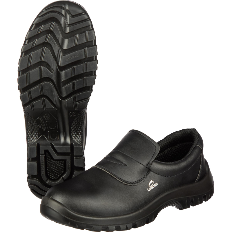 Полуботинки рабочие летние Luscan ПУ из микрофибры с металлическим подноском чёрные размер 38. Полуботинок Luscan подойдут для мужчин и для женщин. Выполнены в чёрном цвете. Рекомендуется использовать в пищевой, электронной, атомной, фармацевтической промышленности. Материал верха: микрофибра — устойчивая к загрязнениям и атмосферным воздействиям, высокотехнологичная микро волокнистая, композиционная кожа, повышенной толщины (состоит из мельчайших волокон, обеспечивающих доступ воздуха). Подкладка — воздухопроницаемое подкладочное полотно Cambrelle. Мягкий кант обеспечивают комфорт при носке обуви. Металлический подносок 200 Дж обеспечивает защиту пальцев ног. Износоустойчивая подошва из двухслойного полиуретана. Литьевой метод крепления. Анатомическая стелька. Пригодна для стирки в промышленных стиральных машинах.