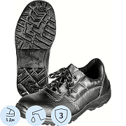 Верх обуви выполнен из натуральной кожи толщиной 2,0-2,2 мм. Мягкий кант и широкая колодка обеспечивают комфорт при носке. Термопластичный подносок для дополнительной защиты. Подошва из однослойного полиуретана с литьевым методом крепления, маслобензиностойкая.
