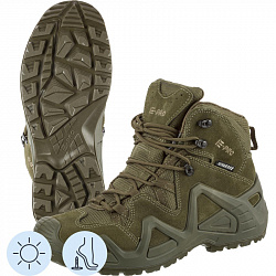 Материал верха — Лорика, высокотехнологичная композиционная кожа из микро волокон, устойчивая к загрязнениям и атмосферным воздействиям. Подкладка из воздухопроницаемого материала Cambrelle. Термопластичный подносок и перфорация на союзке обеспечивают комфорт при носке.