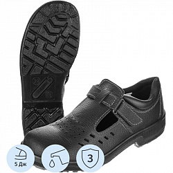Подошва противоскользящая, двухслойная. Промежуточный слой из полиуретана с амортизацией. Ходовой слой из износостойкого ТПУ. Метод крепления — литьевой.