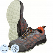 Верх выполнен из полиуретановой сетки и текстильного 3D-полотна. Конструкция включает композитный подносок из поликарбоната с защитой от ударов до 200 Дж. Застежка — шнуровка.
