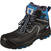 Изготовлены из натуральной кожи. Застёжка в виде шнурков. Подносок: композитный (поликарбонатный), защищает от ударов силой до 200 Дж. Утеплитель: натуральный мех.