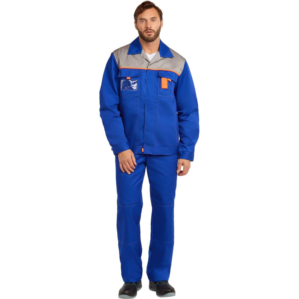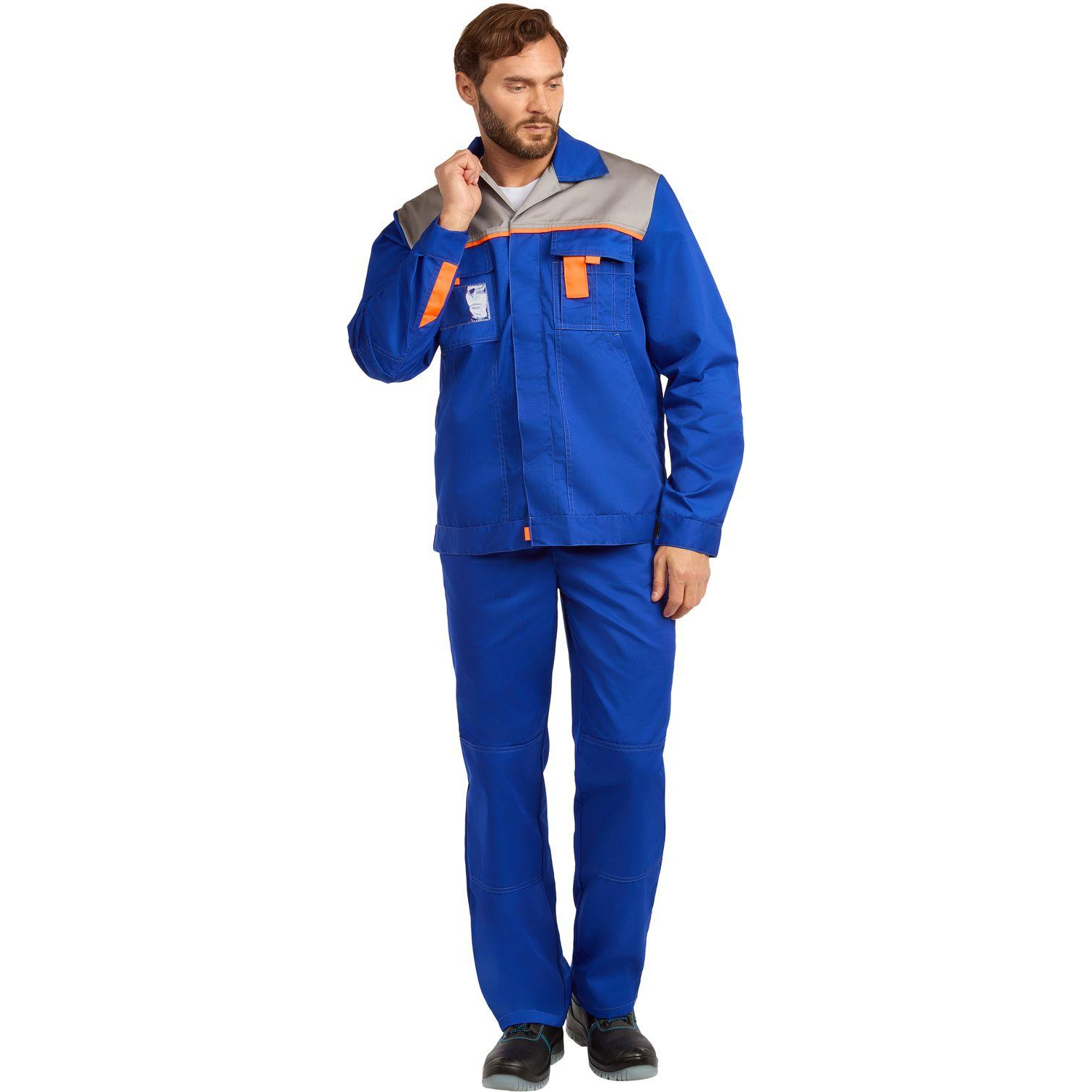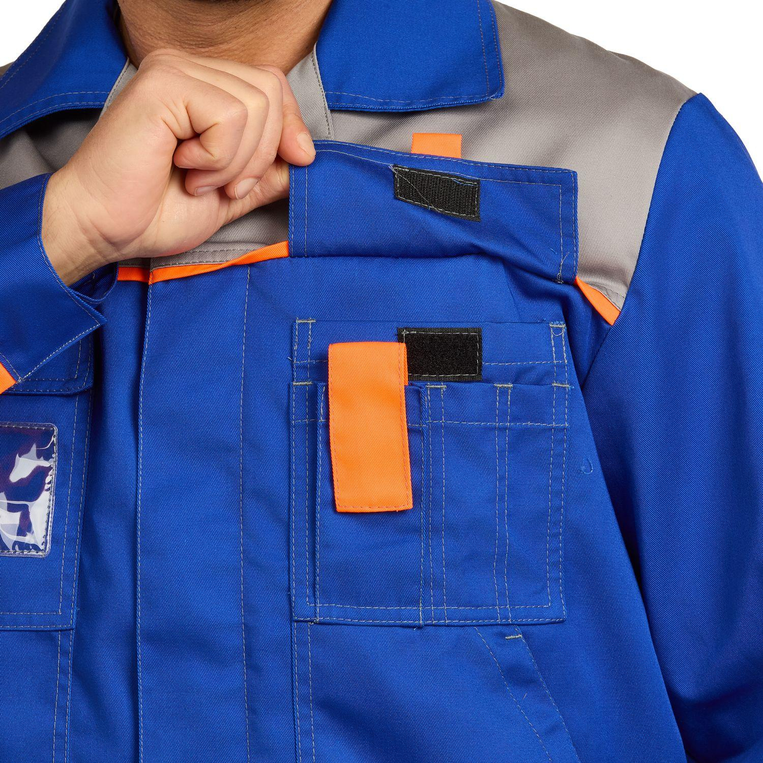 Костюм рабочий летний мужской модели л10-КПК выполнен в васильковом цвете с серыми и оранжевыми вставками. Размер 48-50, рост 170-176. Состоит куртки и полукомбинезона.Изготовлен из смесовой ткани с отделкой ВО (65% полиэстер, 35% хлопок). Плотность ткани- 240 г/кв.м. За счет оптимального соотношения хлопка и полиэфирных волокон дают высокие эксплуатационные характеристики, не мнется, костюм держит свою первоначальную форму даже после многократных стирок, не требует глажки, износостойкий. Благодаря матовой поверхности ткани, одежда выглядит презентабельно и аккуратно.