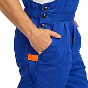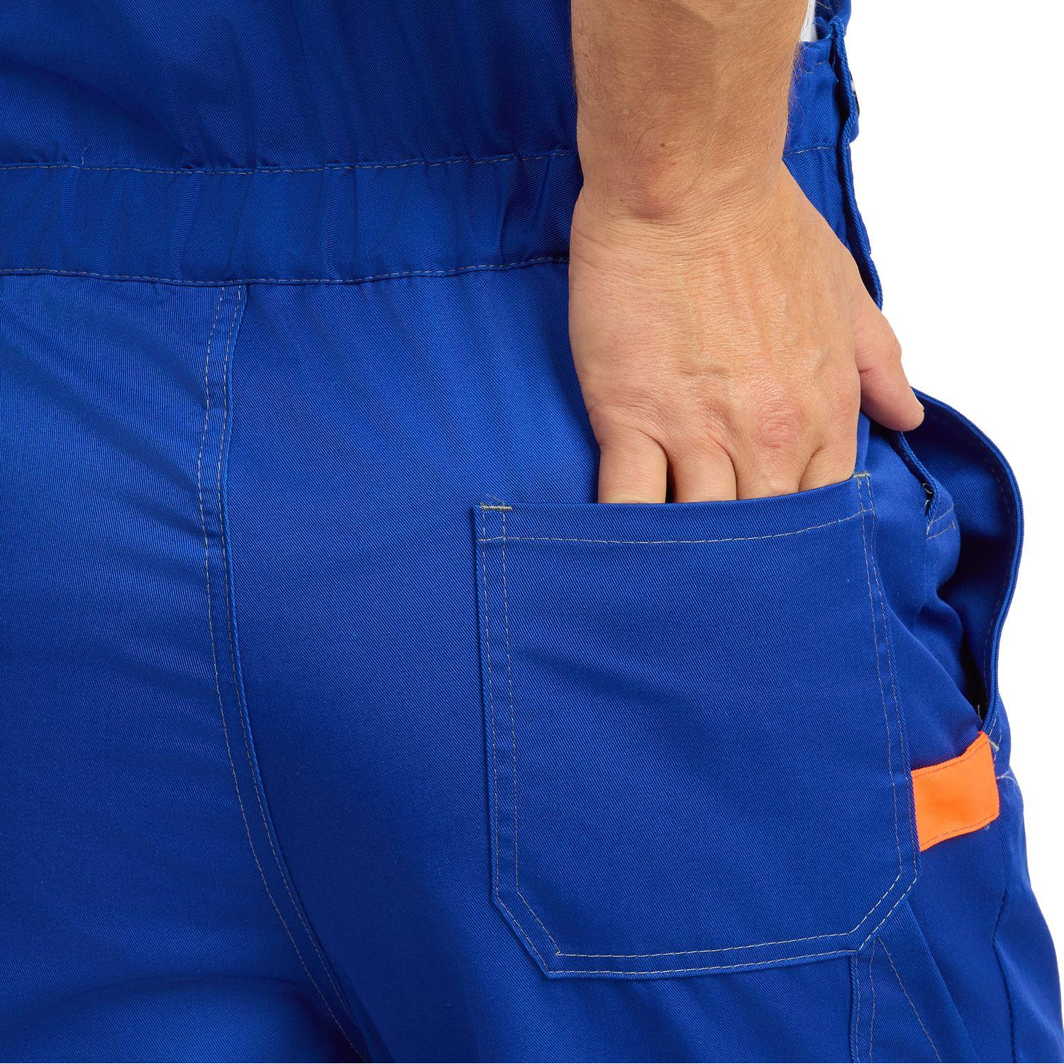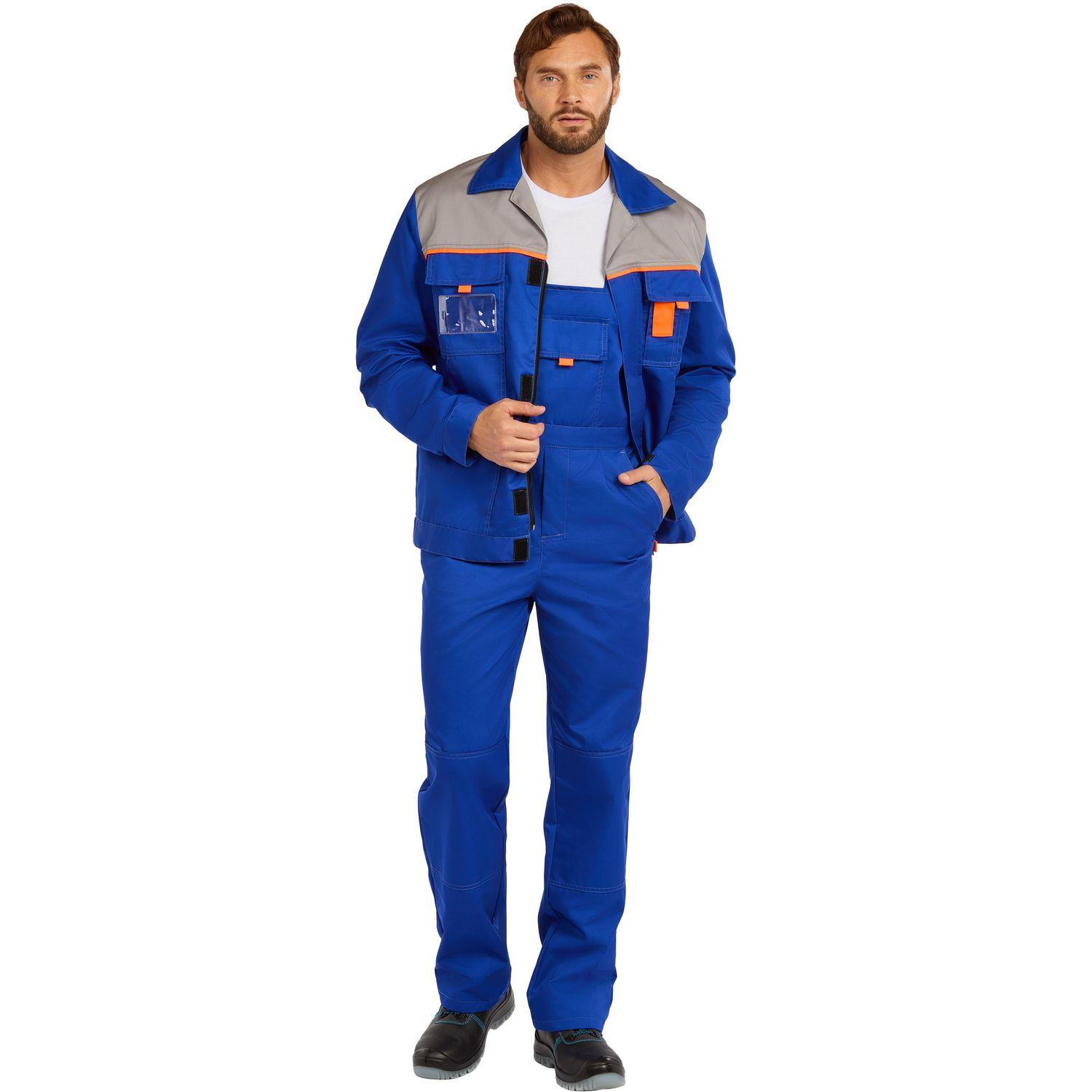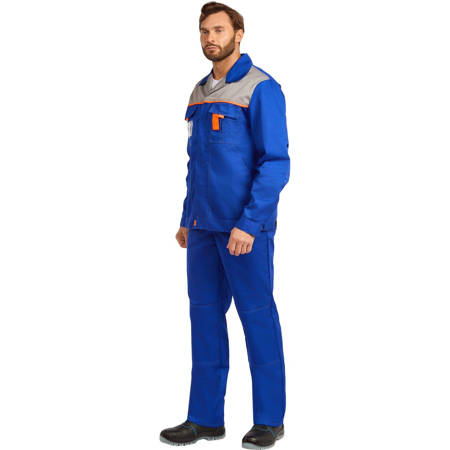 Костюм рабочий летний мужской модели л10-КПК выполнен в васильковом цвете с серыми и оранжевыми вставками. Размер 48-50, рост 170-176. Состоит куртки и полукомбинезона.Изготовлен из смесовой ткани с отделкой ВО (65% полиэстер, 35% хлопок). Плотность ткани- 240 г/кв.м. За счет оптимального соотношения хлопка и полиэфирных волокон дают высокие эксплуатационные характеристики, не мнется, костюм держит свою первоначальную форму даже после многократных стирок, не требует глажки, износостойкий. Благодаря матовой поверхности ткани, одежда выглядит презентабельно и аккуратно.