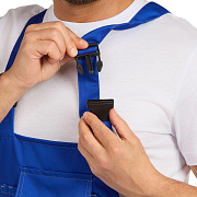 Куртка с застежкой на молнию и контактную ленту. Многофункциональные карманы, специальный карман для телефона, окошко для бейджика. На спине куртки складки для свободы движения. Рукава с усилительными налокотниками, защищающими от истирания. Ширина пояса куртки регулируется патой. Манжет куртки представляет собой застежку на липучке. Полукомбинезон с многофункциональными карманами, с усилительными наколенниками. Бретели регулируются по длине.Костюм обеспечивает защиту от общих производственных загрязнений, от механических повреждений (истирания).