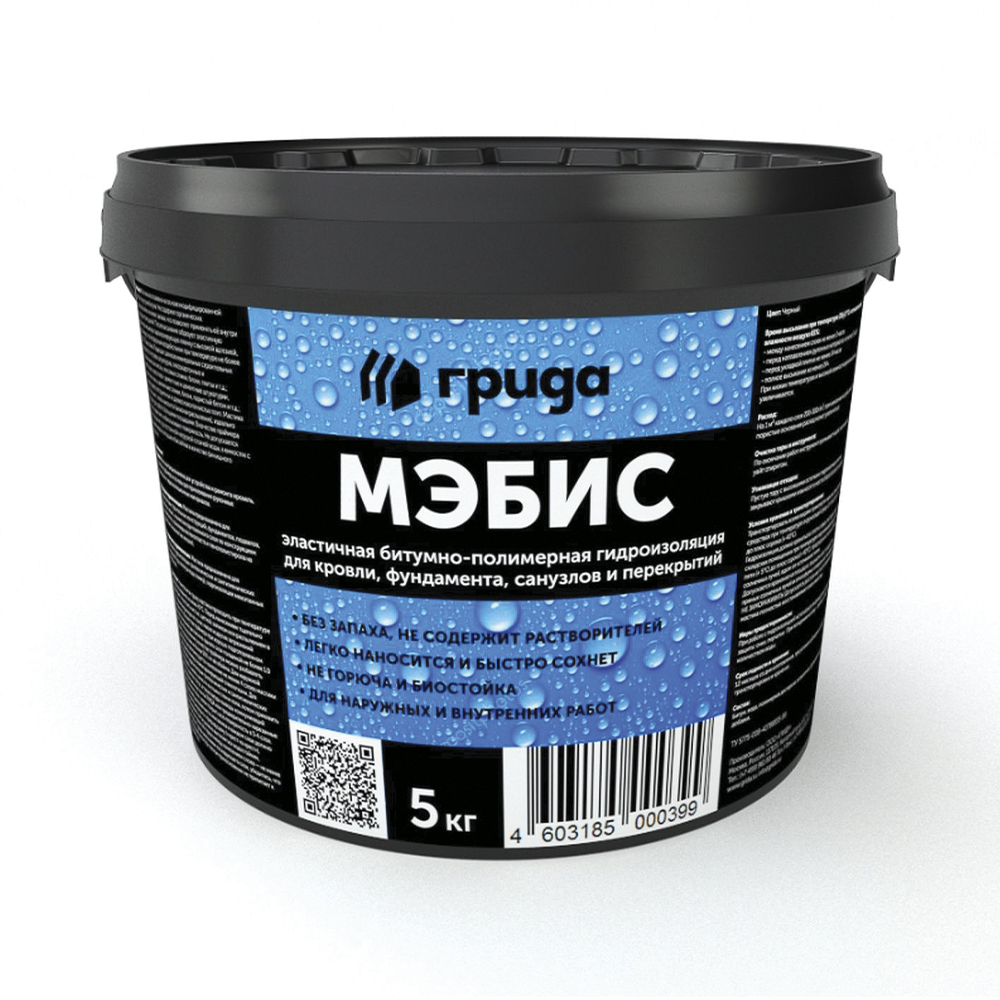 Мастика битумно-полимерная Грида Мэбис, гидроизоляционная, черная, 5 кг