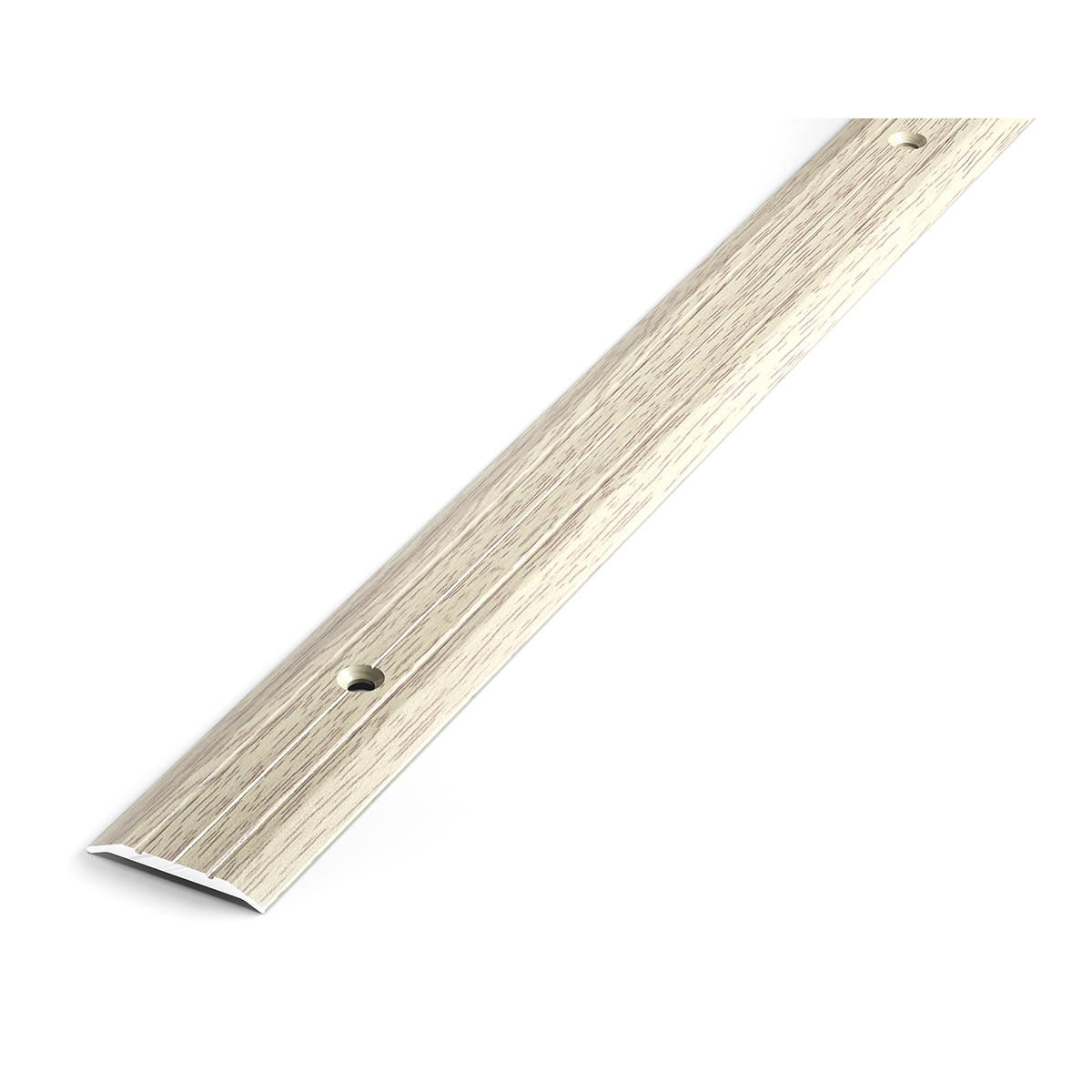 Плоский порог шириной 25 мм с двумя желобками. Это незаменимая деталь для логического завершения настила напольных покрытий.