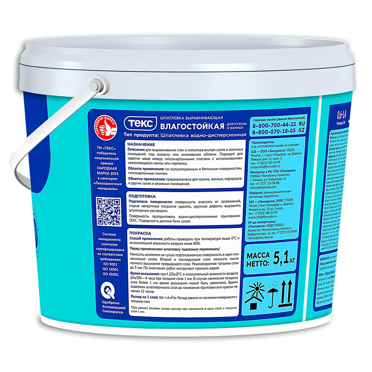 Шпатлевка влагостойкая Текс, 5,1 кг