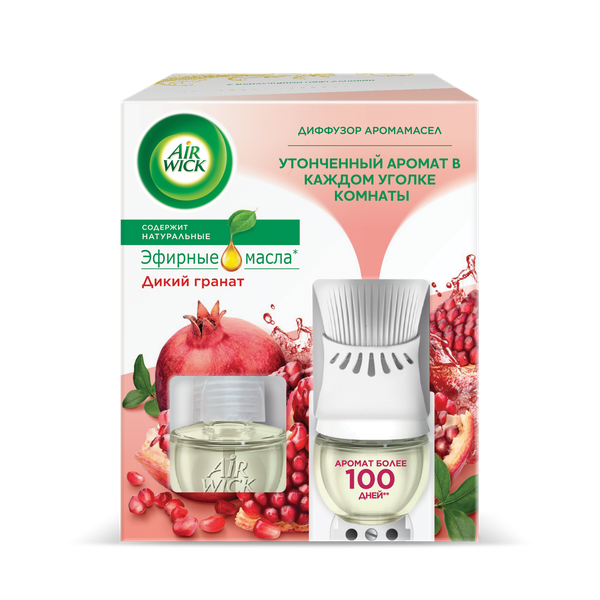 Диффузор аромамасел Airwick Liquid со сменным флаконом Дикий гранат наполнит ваш дом вдохновением, которое будет длиться день за днем.
