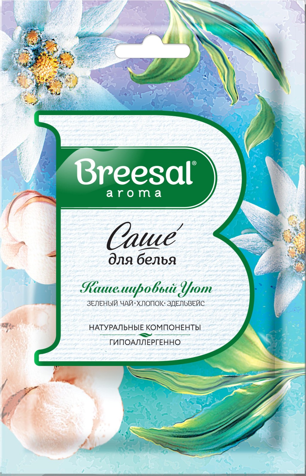 Саше ароматическое Breesal Кашемировый уют с ароматом зеленого чая хлопка и эдельвейса