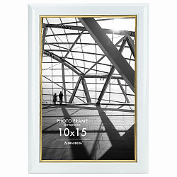 Рамка 10х15 см небьющаяся, багет 14,6 мм, пластик, BRAUBERG "Original Line", белая/золото, 391235
