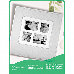 Фотоальбом 22*22 см, 20 белых листов, уголки, стикеры, ручка, клей, BRAUBERG White Line, 880651