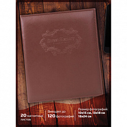 Фотоальбом 16,5*18 см, 20 черных листов, обложка КРАФТ, уголки/стикеры/ручка/клей, Brauberg Black