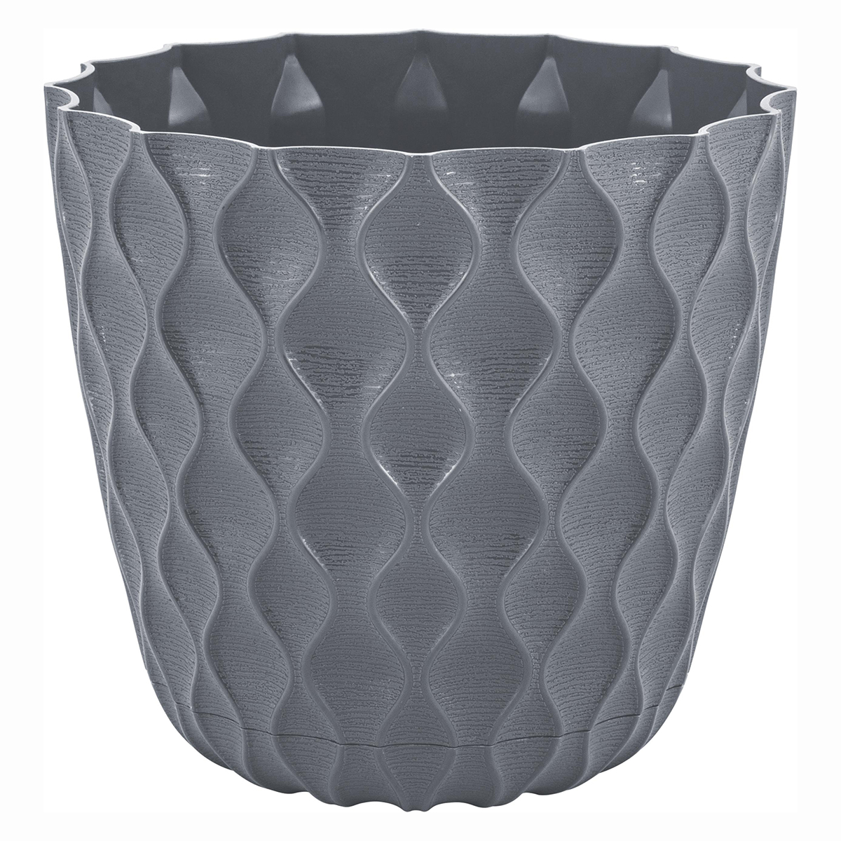 Горшок для цветов InGreen Wave, с поддоном, 4,7 л, вулканический серый
