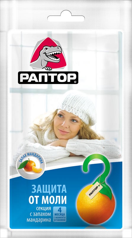 Секция Раптор от моли с запахом мандарина 2 секции картонная подвеска