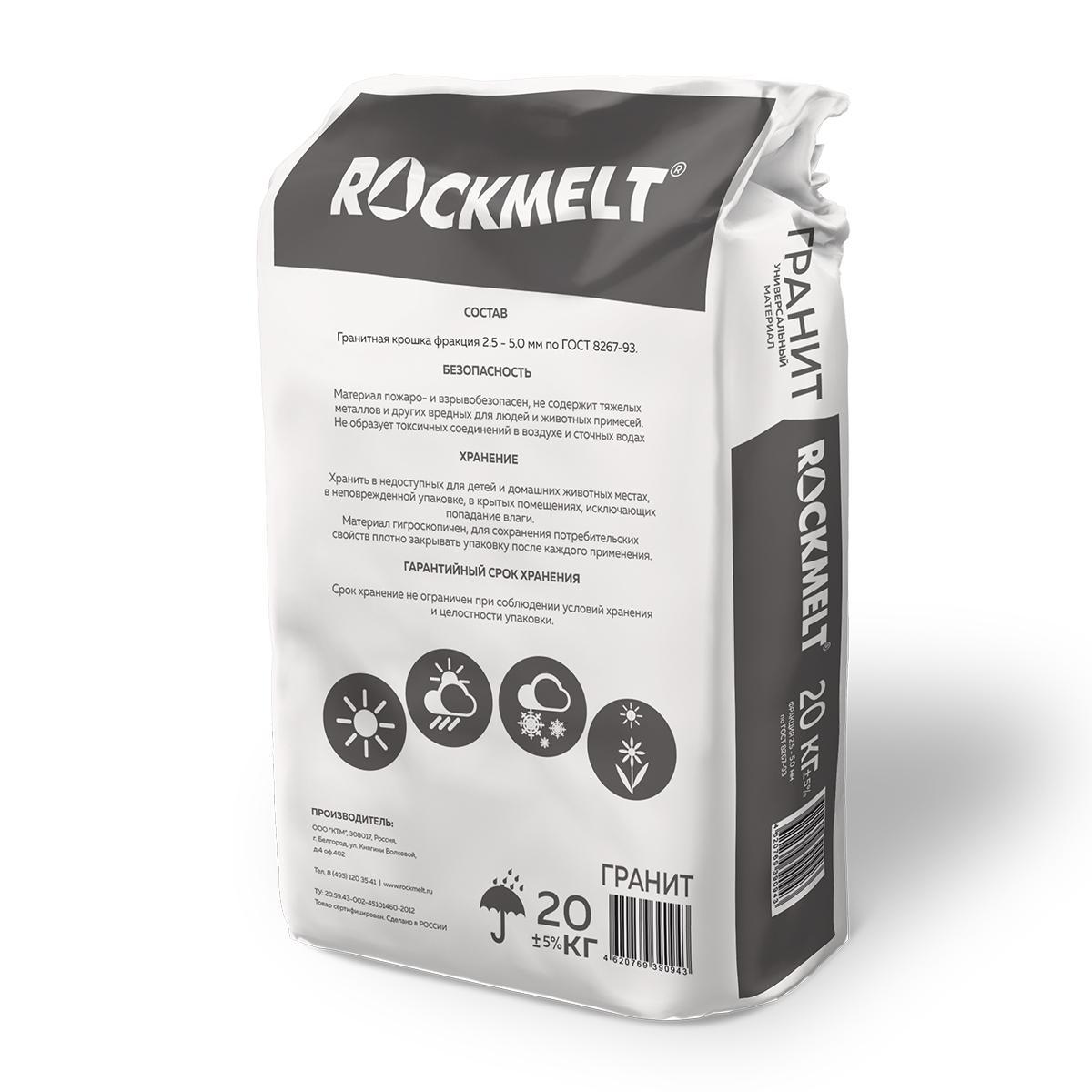 Противогололедный реагент Rockmelt Гранитная крошка, 20 кг