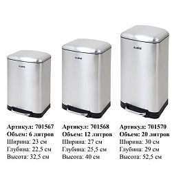 Ведро-контейнер 8 л с педалью, для мусора, 30х25х24 см, цвет серый/графит, 427-СЕРЫЙ, 434270065