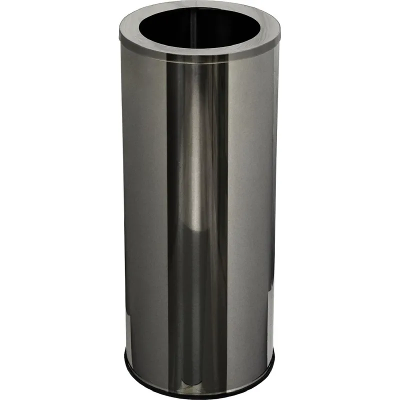 Круглая урна для мусора изготовлена из высококачественной долговечной нержавеющей стали. Урна снабжена металлической крышкой-держателем для мусорных пакетов.