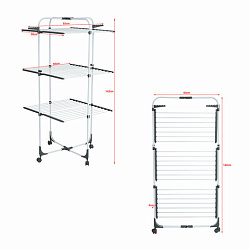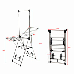Сушилка напольная для белья раскладная 3 уровня, 30 метров, на колесах, LAIMA HOME HIGH-RISE, 700472