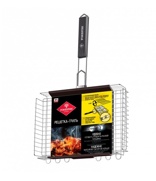 Большая объемная решетка-гриль Forester изготовлена из стали с пищевым антикоррозийным покрытием. Преимущество данной модели заключается в регулируемой высоте (от 0,5 до 4,5 см), что дает возможность готовить на решетке как тонкие, так и крупные куски продуктов. Размеры рабочей поверхности позволяют разместить за один раз несколько порций. Эргономичная ручка из дерева практически не нагревается, благодаря чему является комфортной и безопасной для рук пользователя. Плотное фиксирующее кольцо исключает риск случайного раскрытия изделия во время приготовления пищи. Усики обеспечивают решетке-гриль повышенную устойчивость в процессе эксплуатации на мангале.