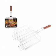 Способ применения: Сдвинуть фиксирующее кольцо к рукоятке. Снять верхний сегмент решетки, расположить куски на нижней плоскости решетки. Прижать продукты верхним сегментом решетки, закрепить фиксирующее кольцо. Жарить, переворачивая решетку по мере необходимости.