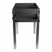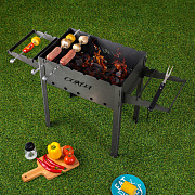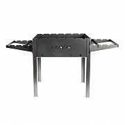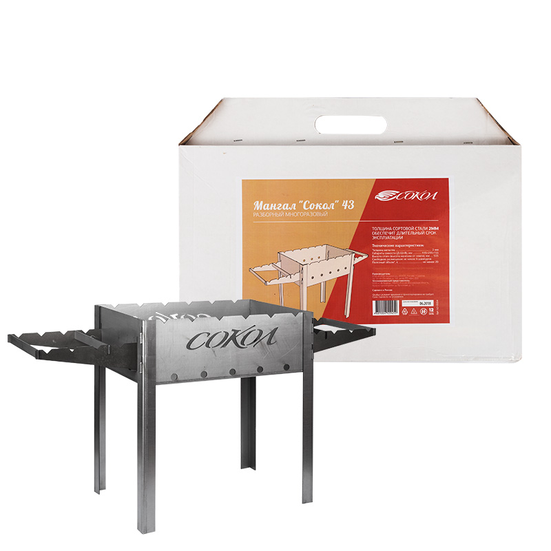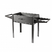 Удобный стальной мангал многоразового использования. Разборная конструкция позволяет с легкостью перевозить мангал. Высота в 50 сантиметров удобна для приготовления шашлыков, а размеры жаровни 500 Х 300 мм позволят разместить шампуры для небольшой компании. Мангал оснащен прорезями для шампуров и специальными держателями, создающими удобство при использовании изделия.