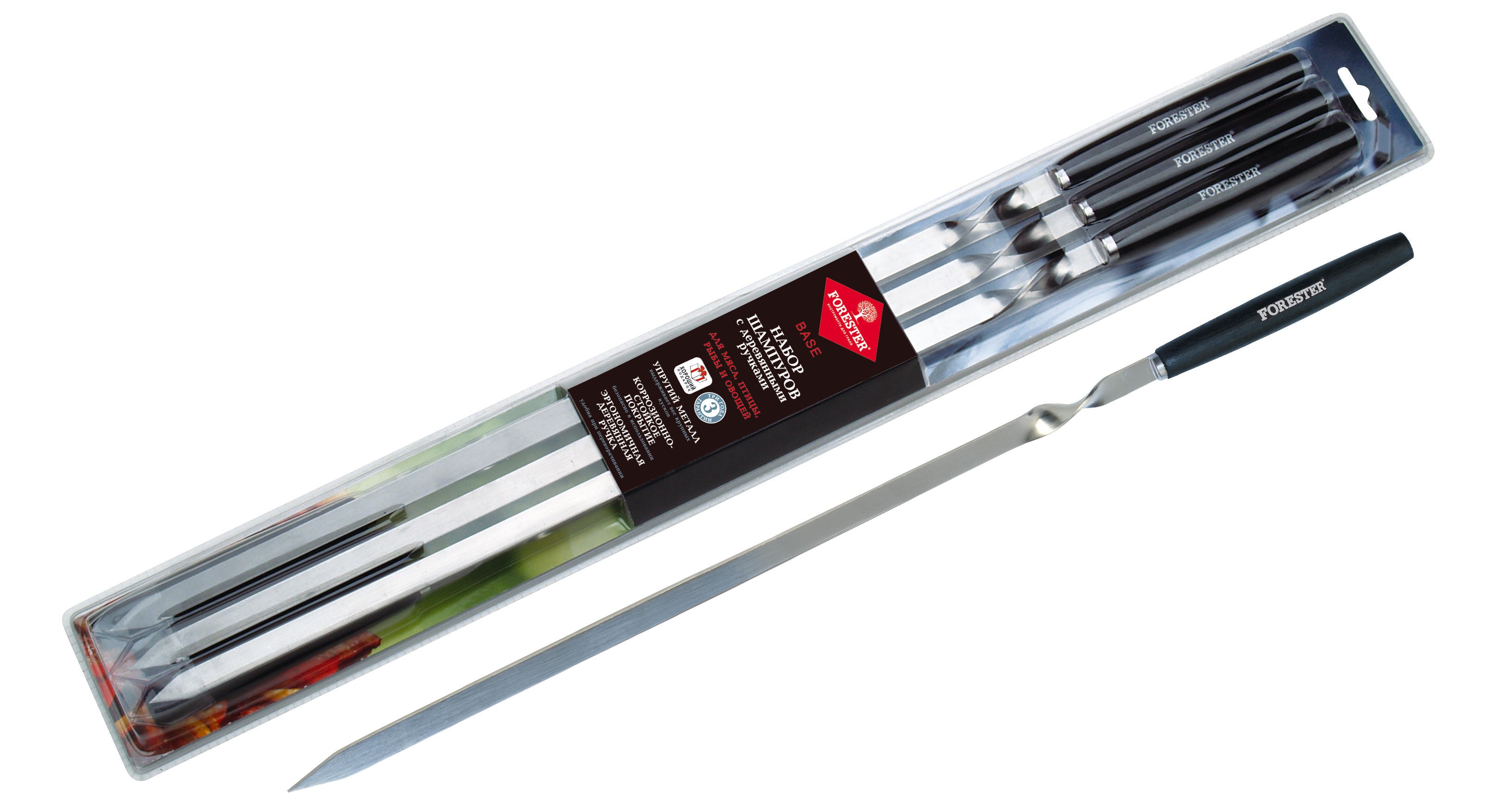 Набор шампуров Forester 55 см с деревянной ручкой 6 шт