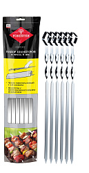 Стальной шампур имеет заостренный конец, благодаря которому процесс насаживания мяса будет легким и быстрым.