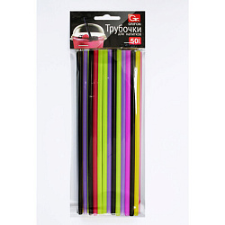 Трубочки для коктейлей прямые пластиковые 5х240 мм, цветные, КОМПЛЕКТ 50шт, GRIFON, ШК0511, 105-139