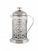 Френч-пресс из жаропрочного стекла, в корпусе из нержавеющей стали позволяет приготовить не только чай или кофе, но и заваривать какао и травяные настои. Можно использовать любой помол зёрен, гранулированный и листовой чай. Перед использованием колбу нужно ополоснуть горячей водой, насыпать молотый кофе или листовой чай, залить его водой, размешать и дать настояться. Перед разливом напитка в чашки нужно опустить фильтр.