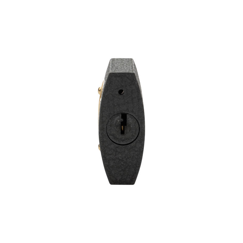 Дужка замка выполнена из закаленной стали, что делает её перекусывание достаточно сложным даже для таких инструментов, как болторезы и арматурные ножницы. Механизм замка выполнен из долговечного и надежного материала.