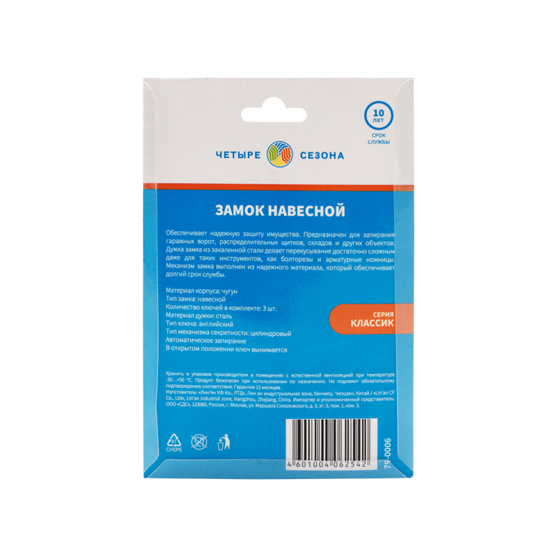 Навесной замок ЧЕТЫРЕ СЕЗОНА идеально подходит для защиты вашего имущества от непрошенных гостей. Замок пригодится для запирания гаражных ворот, распределительных щитков, складов и других объектов.