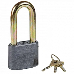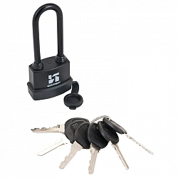 Дужка замка выполнена из закаленной стали, что делает её перекусывание достаточно сложным даже для таких инструментов, как болторезы и арматурные ножницы. Механизм замка выполнен из долговечного и надежного материала.