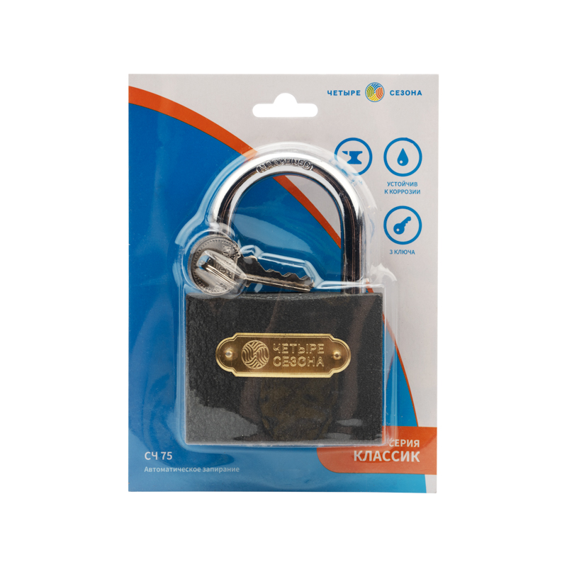 Замок навесной серия «Чугун» 75 мм ЧЕТЫРЕ СЕЗОНА