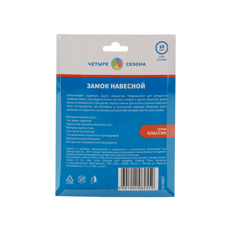 Навесной замок ЧЕТЫРЕ СЕЗОНА идеально подходит для защиты вашего имущества от непрошенных гостей. Замок пригодится для запирания гаражных ворот, распределительных щитков, складов и других объектов.