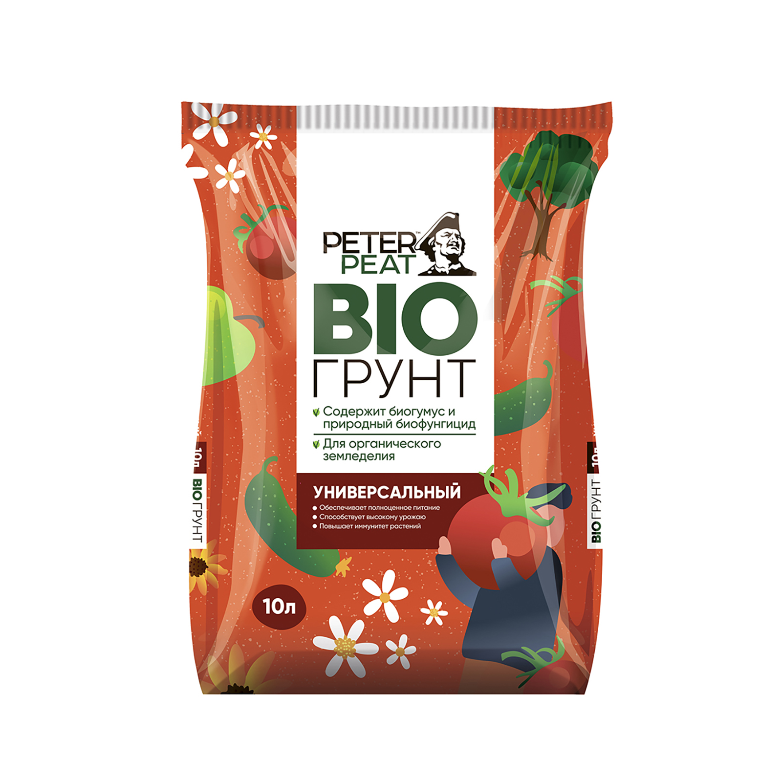 Грунт «Универсальный» линии BIO (БИО) содержит биогумус, отличается повышенным содержанием полезной микрофлоры, обогащён природными биологически активными веществами, стимулирующими рост мощной корневой системы растений, повышающими их устойчивость к неблагоприятным условиям окружающей среды (засуха, заморозки). Наличие в грунте природного биофунгицида - триходермы - обеспечивает защиту от болезней (корневых гнилей, фузариоза, фитофтороза). Гриб триходерма выделяет природные антибиотики, обеззараживая почву. Добавление агроперлита улучшает водно-воздушные свойства грунта.