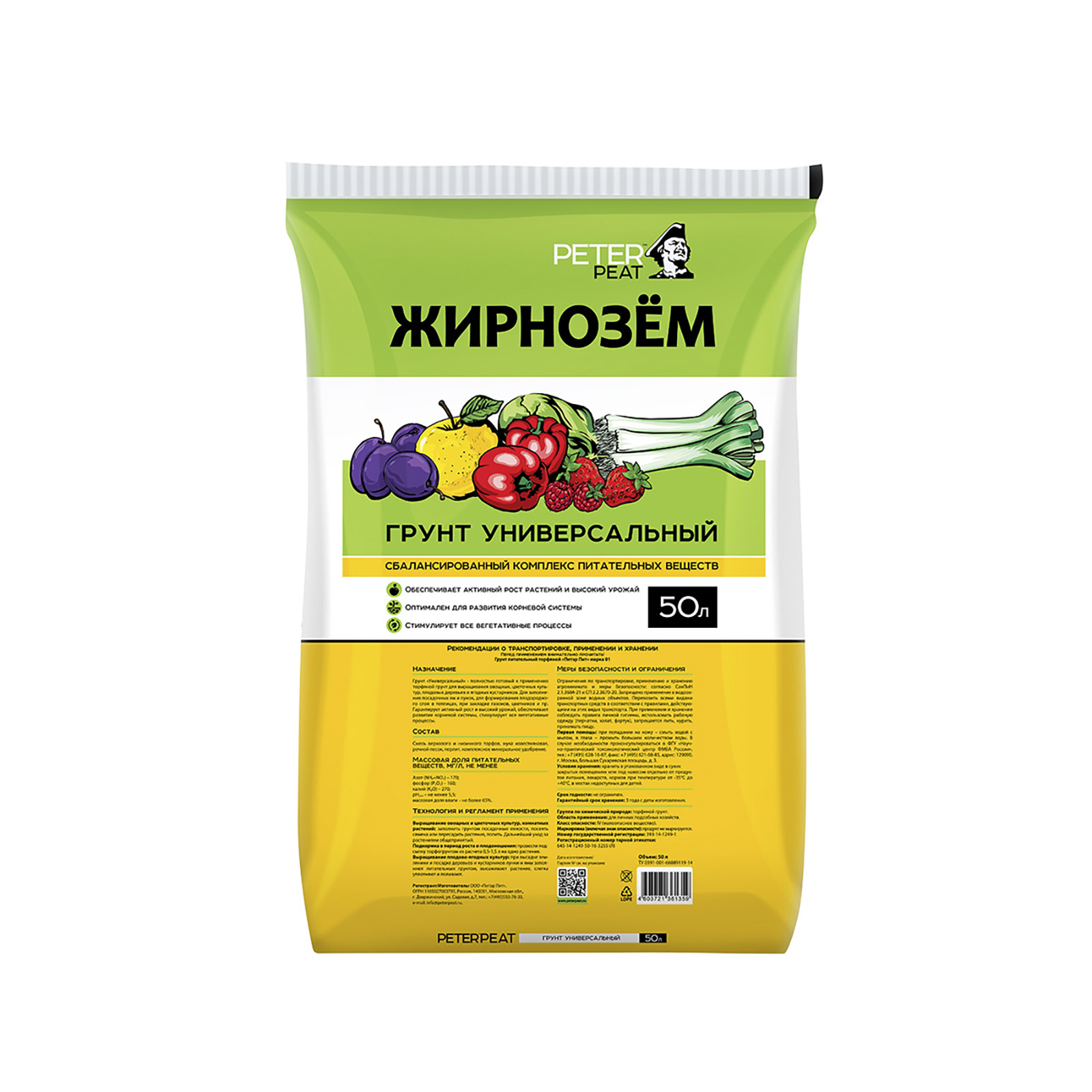 Грунт универсальный Peter Peat Жирнозем, 50 л