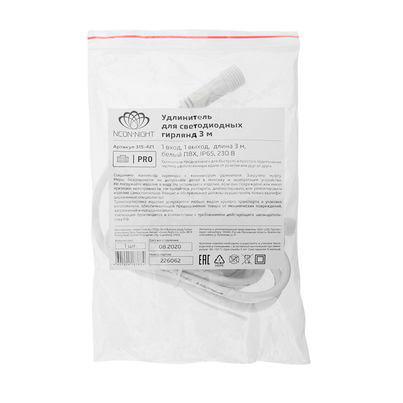 Удлинитель предназначен для быстрого и простого подключения гирлянд, расположенных вдали от розетки или друг от друга, а в сочетании с разветвителями позволяет всю декоративную иллюминацию аккуратно и быстро подключить к одной розетке. Вам больше не понадобится переплачивать за сетевые удлинители огромной длины, наблюдать страшную картину с огромным количеством запутанных проводов, и это не будет омрачать столь прекрасное настроение.