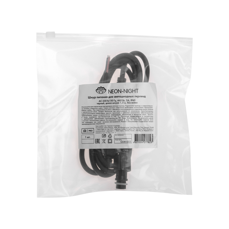 Блок питания для уличных гирлянд (без вилки) 4А, черный каучук, IP65 NEON-NIGHT