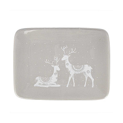 Тарелка сервировочная новогодняя 23 см, "Еловые ветки", каменная керамика, ЗОЛОТАЯ СКАЗКА, 592548