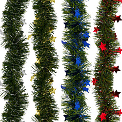 Мишура КОМПЛЕКТ 3 штуки, диаметр 100мм, длина 2м, зеленая с белыми кончиками, ЗОЛОТАЯ СКАЗКА, 592217