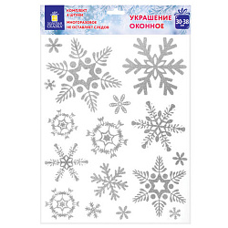 Наклейка для окон, 64 СНЕЖИНКИ, КОМПЛЕКТ 4 шт., 30х38 см, глиттер, серебро, ЗОЛОТАЯ СКАЗКА, 592571