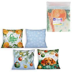 Чехол на подушку новогодний, НАБОР 4 шт., 45х45 см, "X-mas Magic", полиэстер, ЗОЛОТАЯ СКАЗКА, 592528