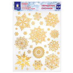 Украшение для окон и стекла ЗОЛОТАЯ СКАЗКА "Узоры из золотых снежинок 1", 30х38 см, ПВХ, 591227