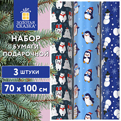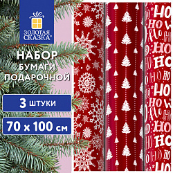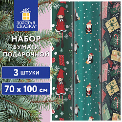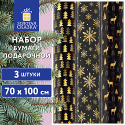 Бумага упаковочная новогодняя НАБОР 3шт "Black&Gold" 70*100см, 3 дизайна, ЗОЛОТАЯ СКАЗКА, 592059