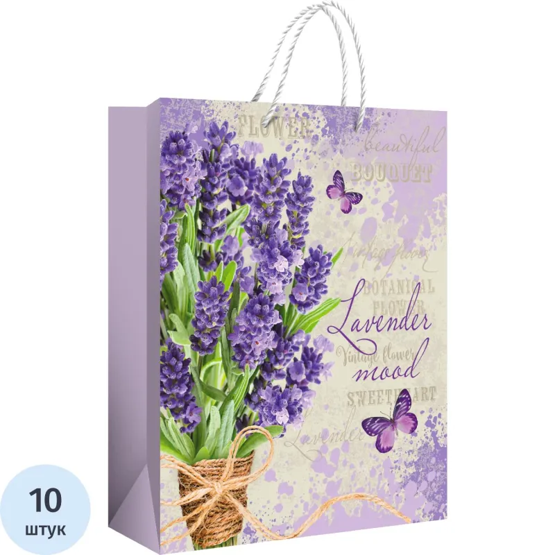 Пакет подарочный ламинация Хорошо лаванда (32.7×26×10 см)