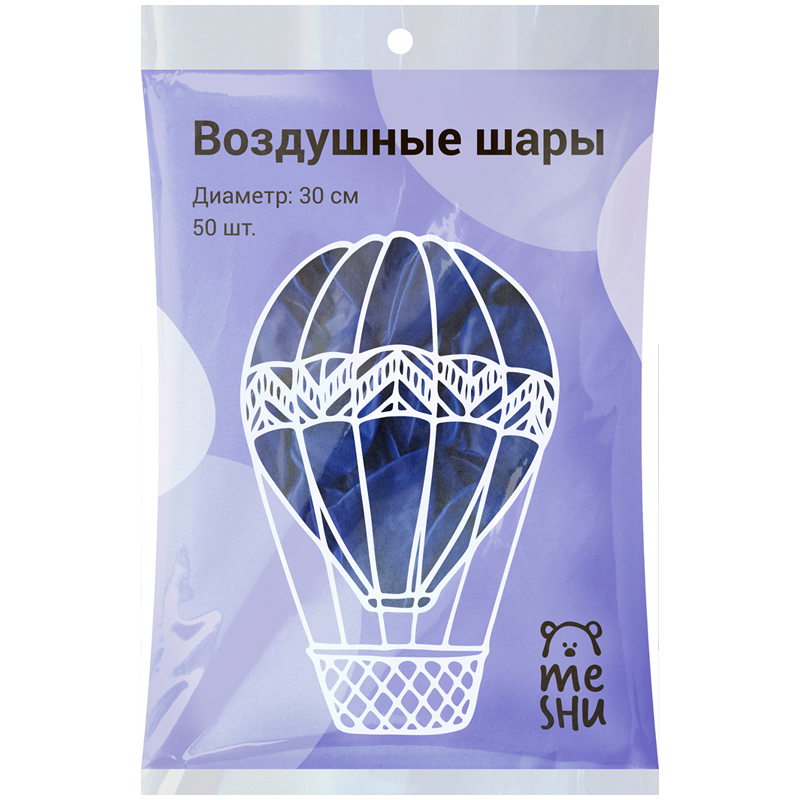 Воздушные шары, 50шт., М12/30см, MESHU, пастель, синий