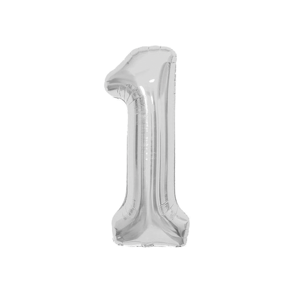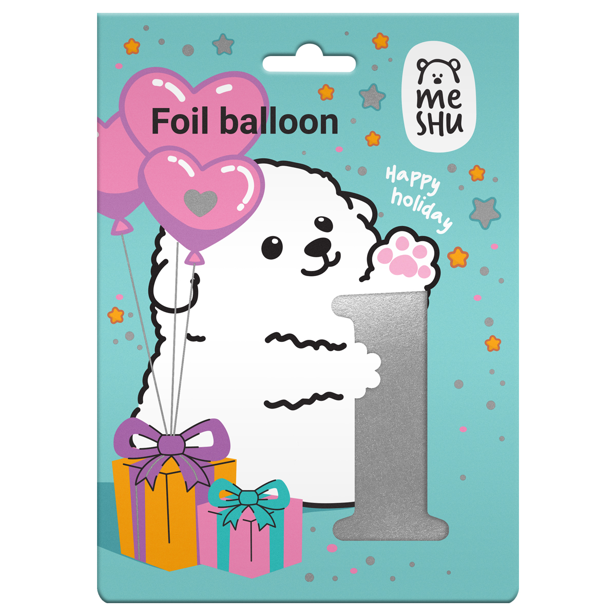 Воздушный шар, 40", MESHU, цифра 1, серебро, фольгированный