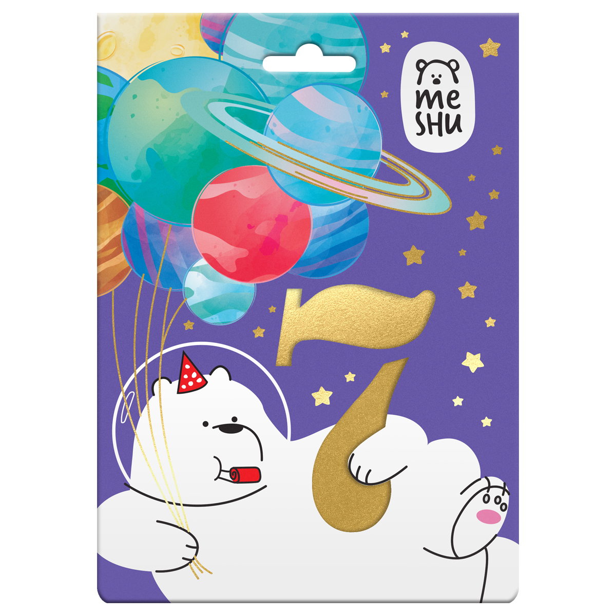 Воздушный шар, 40", MESHU, цифра 7, золотой, фольгированный